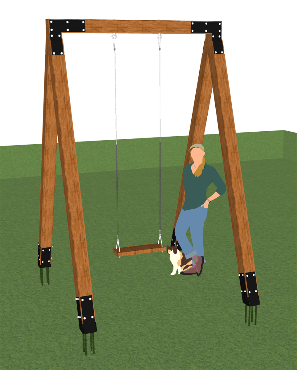 Качеля поставляется в базовой конфигурации без опоры. Конструкция имеет стандартные габариты: высота составляет 3,0 метра, а ширина — 2,0 метра, однако предусмотрена возможность адаптации размеров в соответствии с индивидуальными требованиями заказчика.